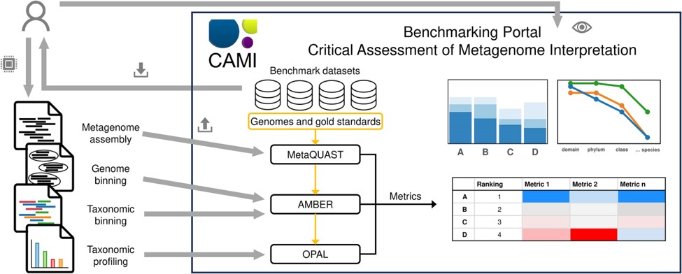 The new CAMI Benchmarking Portal has been launched, a web-based, FAIR-compliant repository and evaluation server. Users can upload assembly, binning, or taxonomic profiling results and instantly compare them against 28,675 existing submissions including a live demo on the marine dataset from the CAMI II challenge using rich metrics and interactive visualizations. This streamlined platform democratizes benchmarking, accelerates best-practice adoption, and keeps metagenomic tool development moving forward. DOI: 10.1093/nar/gkaf369