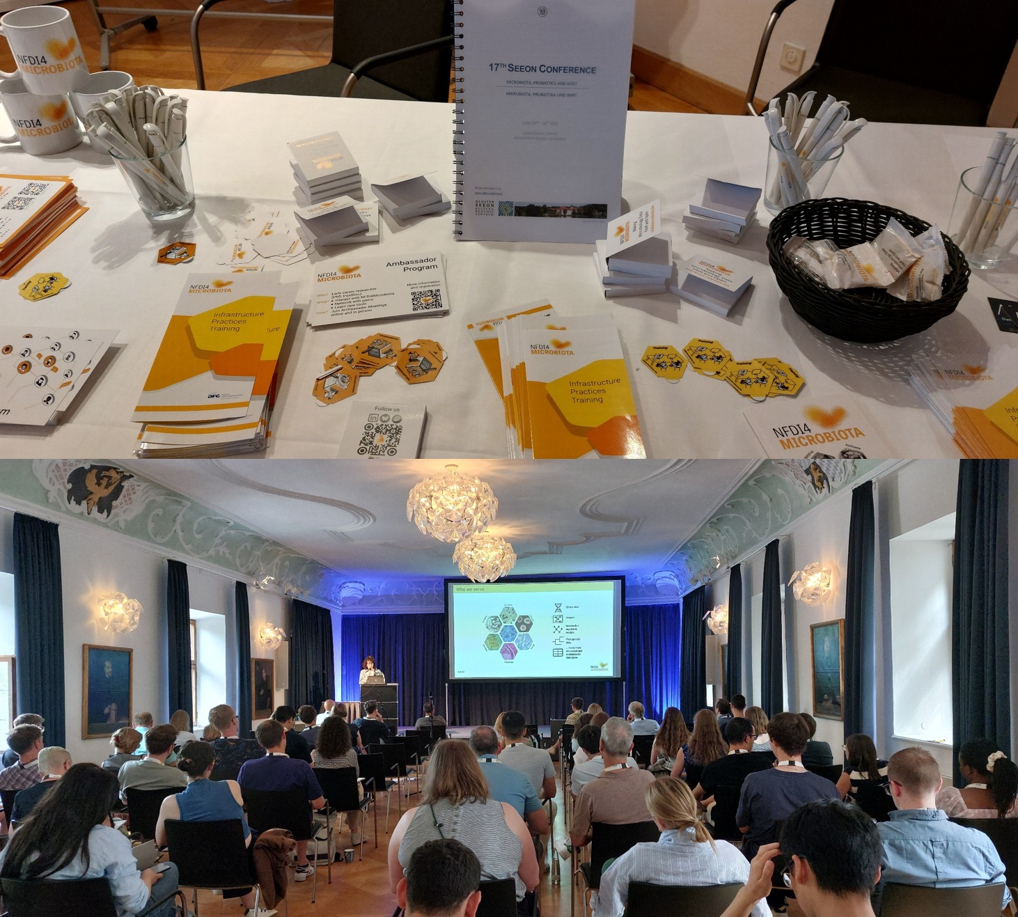 NFDI4Microbiota contributed to the 17th Seeon conference of the DGHM specialist group ‘Microbiota-Probiotics-Host’ with an oral presentation and a booth. The event was marked by good food, lively discussions, and a relaxed atmosphere. Some participants even enjoyed a refreshing swim in the lake. Our surprise boxes filled with NFDI4Microbiota merchandise were especially popular – they went like hotcakes!